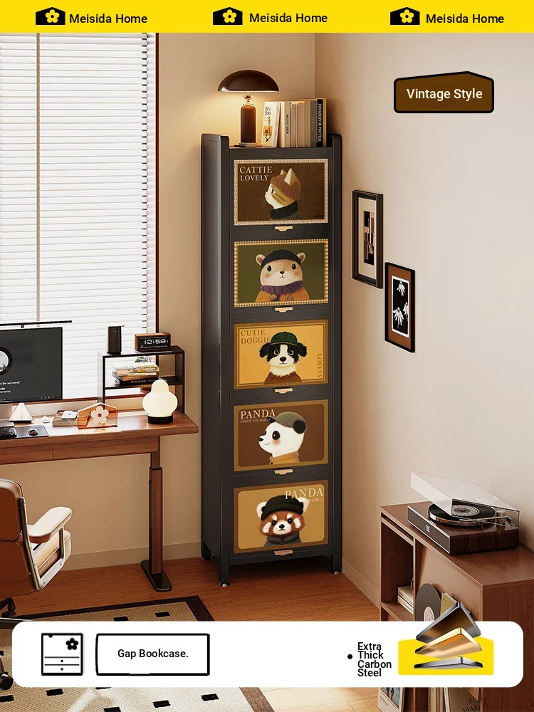 Meisida Narrow Entryway Shoe Cabinet - Stylish Steel Storage Solution for Home, No-Screw Assembly, Perfect for Small Spaces and Vintage Decor.
