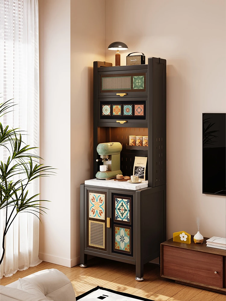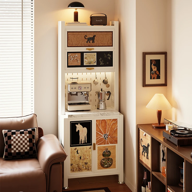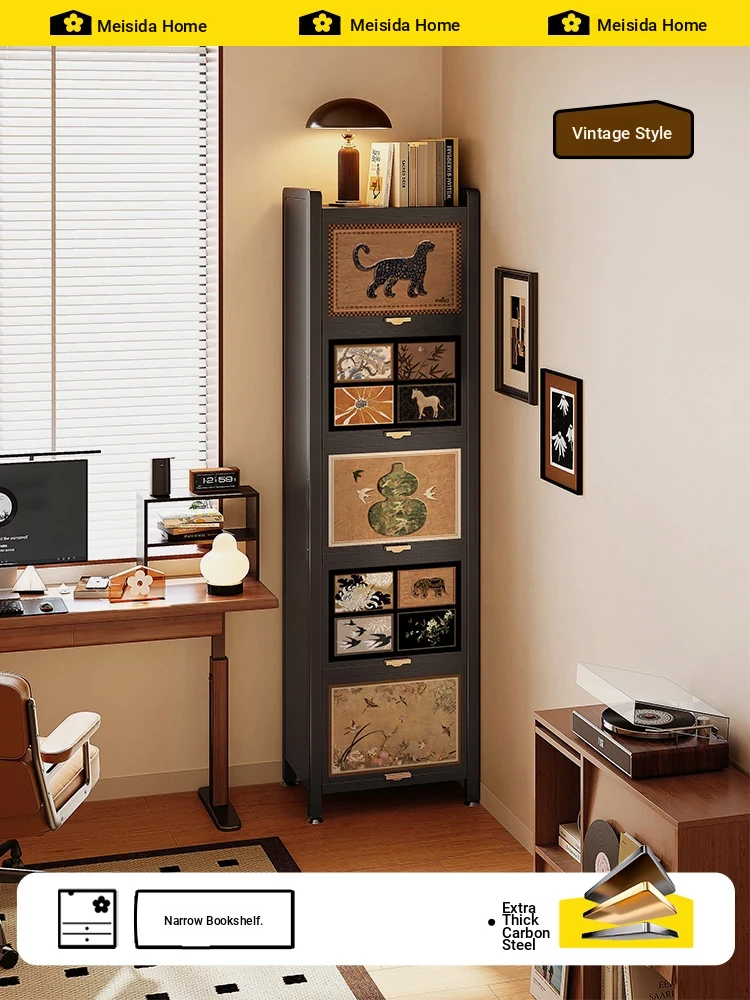 Mei Sida Vintage Carbon Steel Narrow Coffee Side Cabinet - Retro Iron Wall-Mounted Storage Unit for Stylish Home Organization
