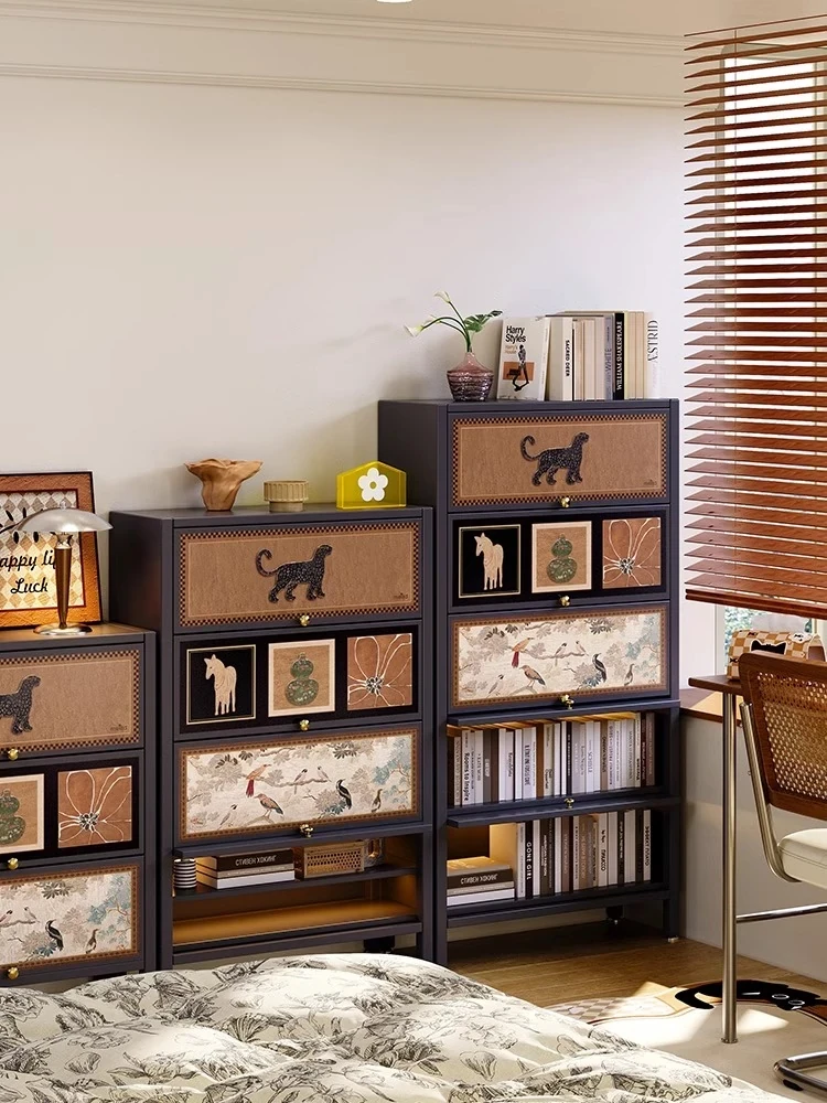 Meisida Vintage-Style Stainless Steel Wall-Mounted Storage Cabinet - Elegant Iron and Leather Five-Drawer Unit for Home Living Room - Perfect for Organizing and Enhancing Your Space!