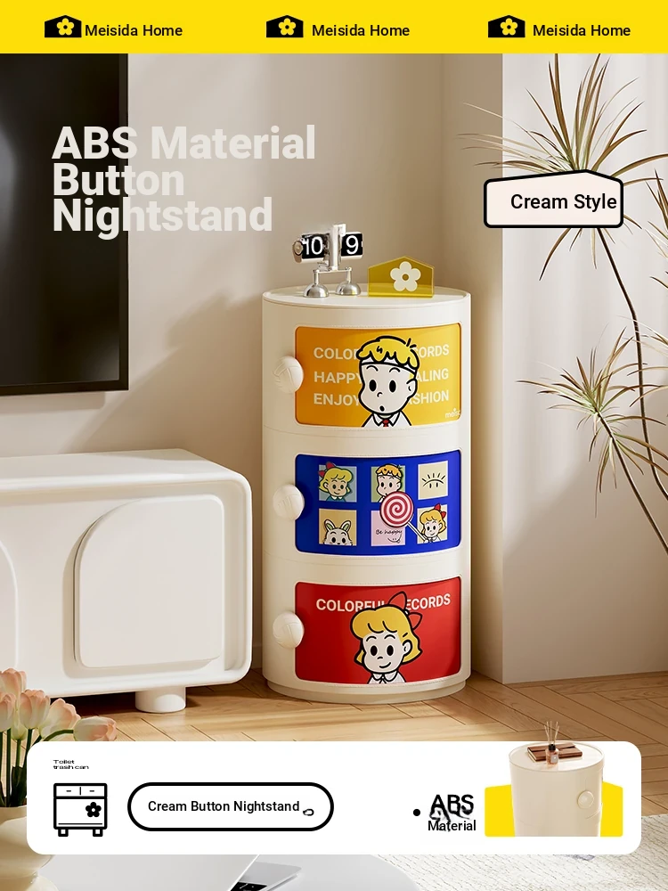 Stylish Cream Nightstand - Versatile Home Bedroom Storage Shelf, Creative Side Cabinet, Compact Organizer for Small Spaces