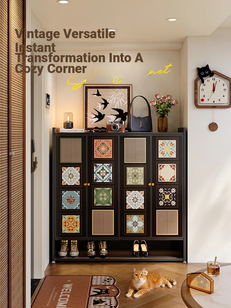Elegant Entrance Cabinet - Vintage Style Partition Unit for Hallway, Living Room Storage Shelf, High-End Shoe Rack and Privacy Screen, Perfect for Home Décor