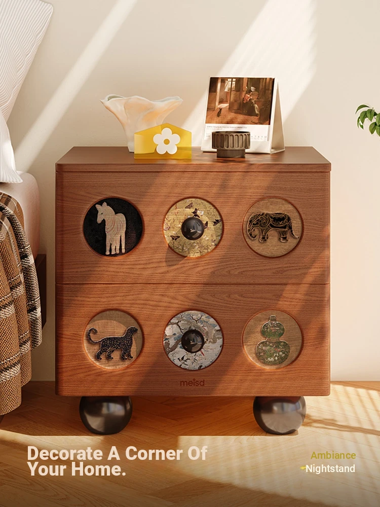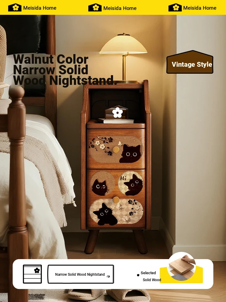 Meisida Vintage-Style Nightstand - Solid Wood Bedside Storage Cabinet for Home Bedroom, Elegant All-in-One Organizer, Retro Design