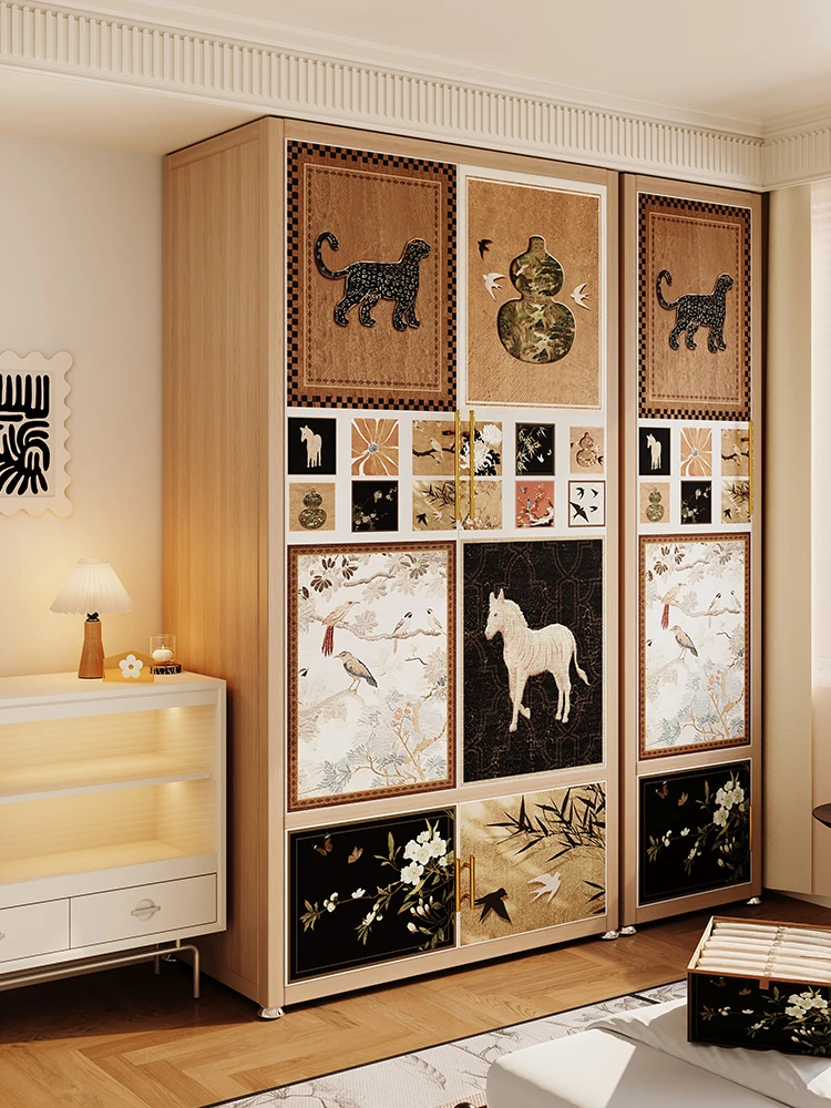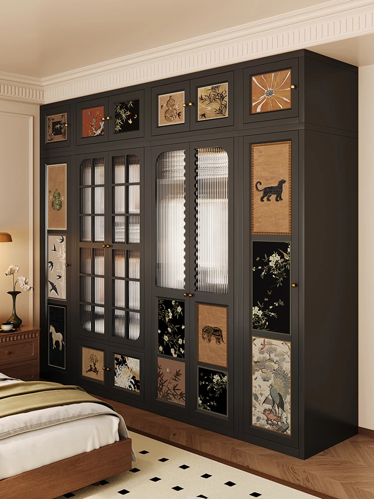 Meisida Vintage Assembled Wardrobe - French Antique Style Storage Cabinet for Home Bedroom, Stainless Steel and Aluminum Alloy Armoire