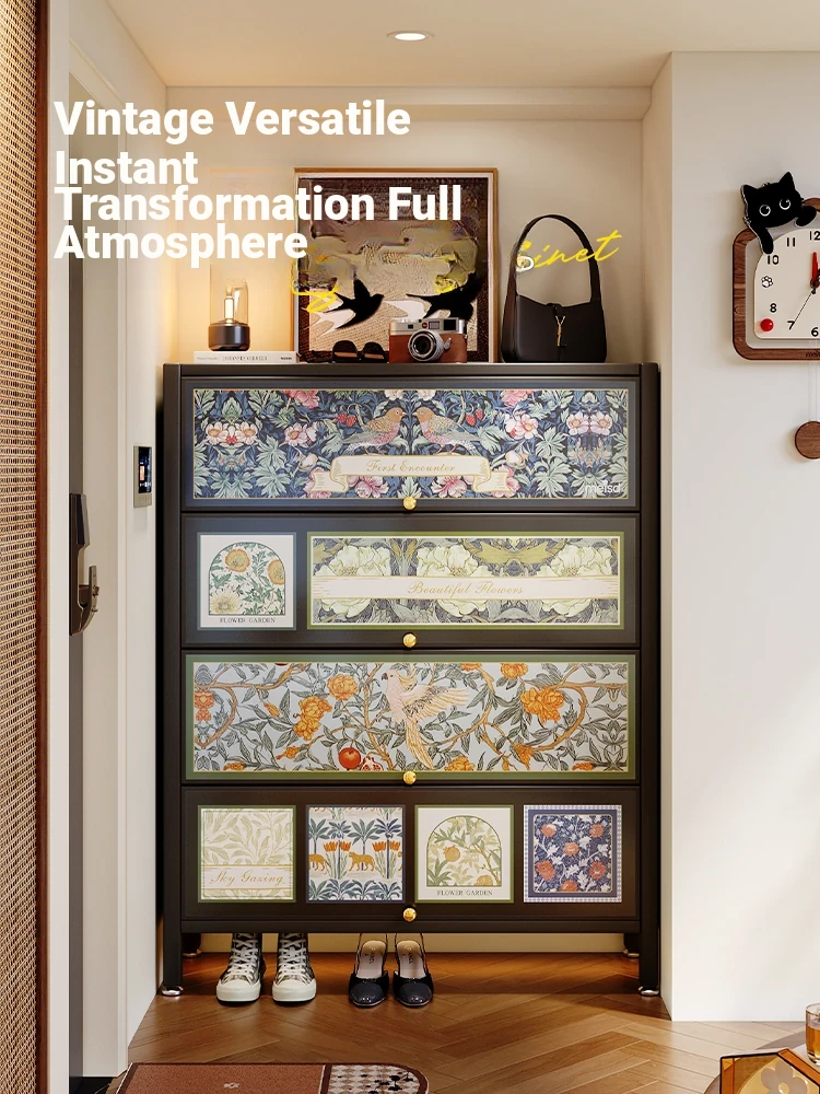 Meisida Vintage-Style Large Capacity Shoe Cabinet for Home Entrance – Multi-Layer Storage Organizer, Wall-Mounted, Steel Construction, Perfect for Hallway Décor