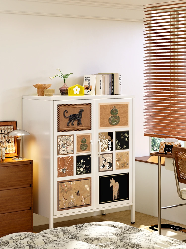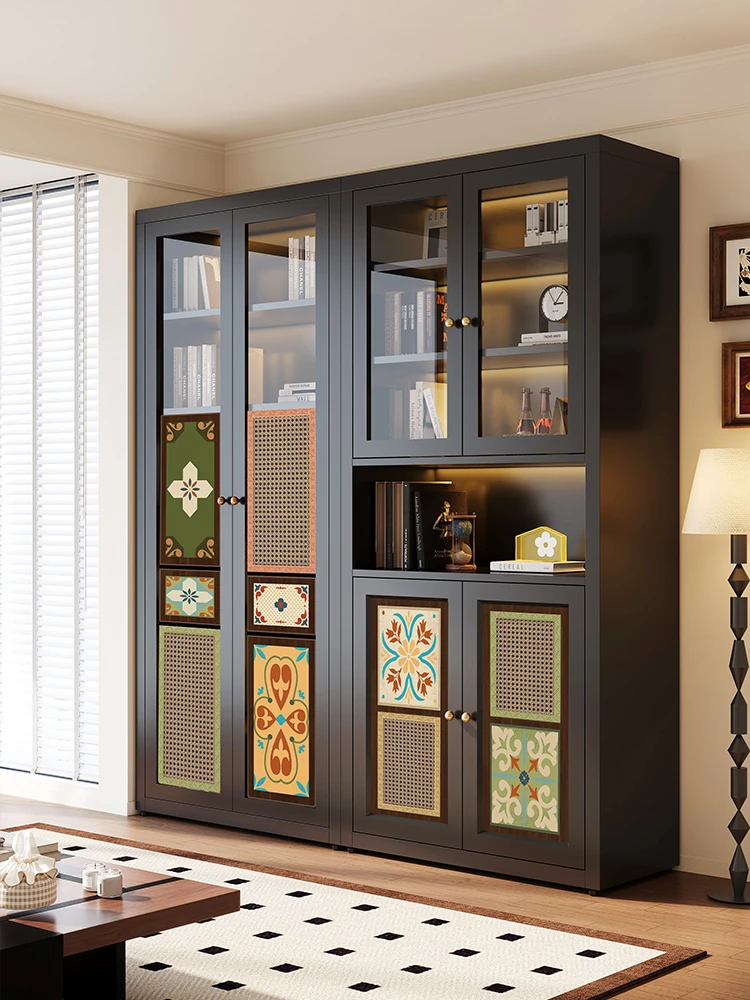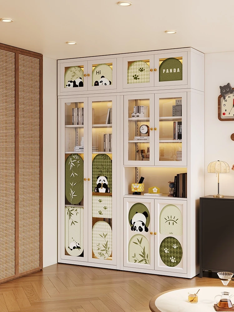 Meistad Panda French Art Iron Bookshelf - Stylish Floor Storage Rack with Cabinet Doors for Living Room, All-in-One Bookcase and Storage Solution