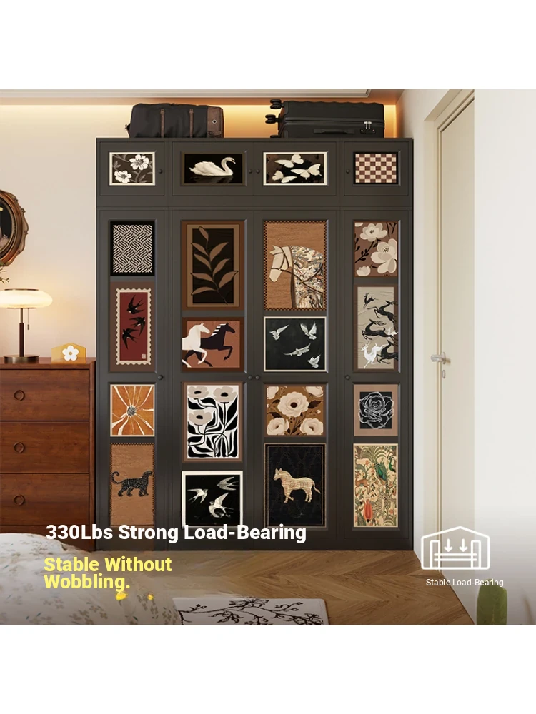 Meisida Vintage Wardrobe with Dustproof Design - Retro Iron Combination Closet for Home Bedroom, Carbon Steel Storage Solution, Perfect for Organizing Clothes and Accessories.