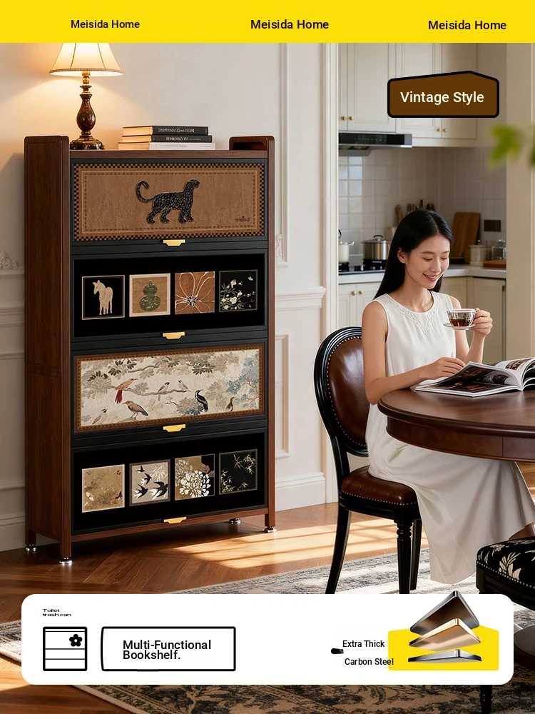 Meisida Vintage-Style Steel Bookshelf - Floor Standing Storage Rack, Iron Art Bookcase with Dustproof Design, Wall-Mounted, Perfect for Living Room Organization