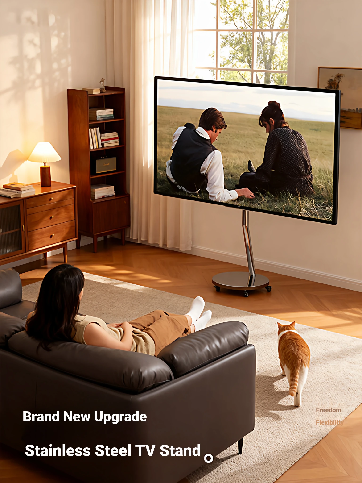 Movable Stainless Steel TV Stand with Wheels for 40-75 Inch TVs - Perfect for Modern Living Rooms!
