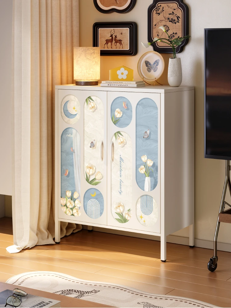Meisida Creamy Wind Tulip Floor Bookshelf - Stylish Iron Storage Rack for Living Room & Bedroom, Durable Steel Mini Book Cabinet for Organizing Your Space