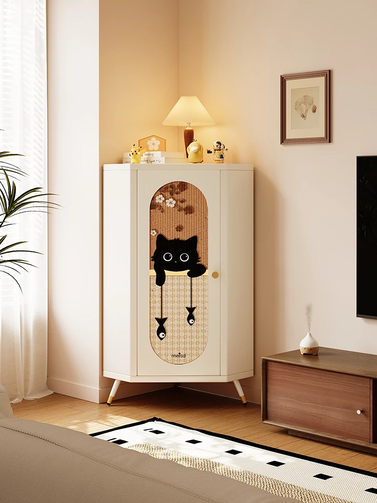 Meisida Vintage Metal and Leather Corner Shelf - Space-Saving Triangular Storage Cabinet for Small Living Rooms, Perfect for Narrow Corners