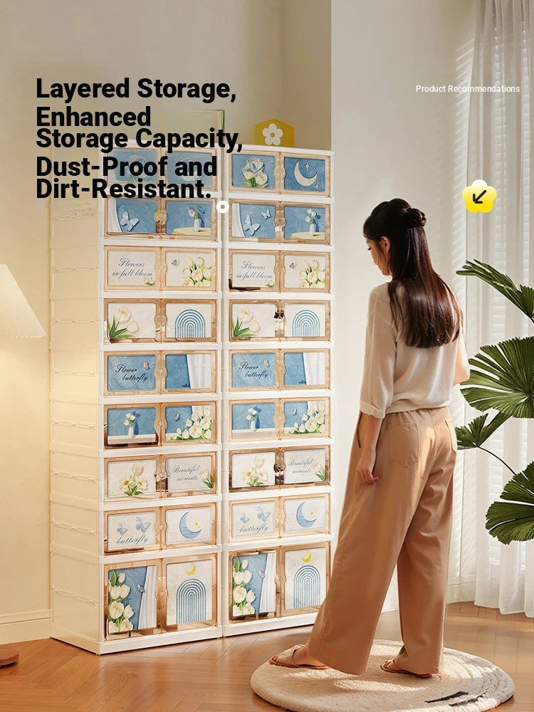 Meisida No-Installation Shoe Cabinet - Home Folding Transparent Shoe Box with Cream Entrance Dustproof Multi-Layer Shoe Rack for Convenient Storage and Organization