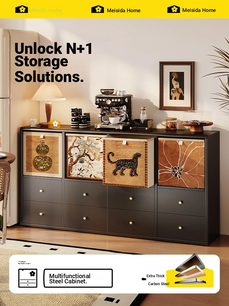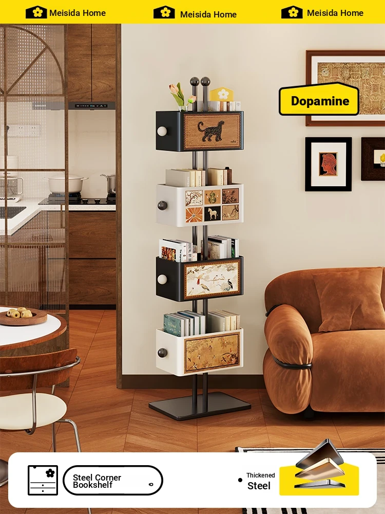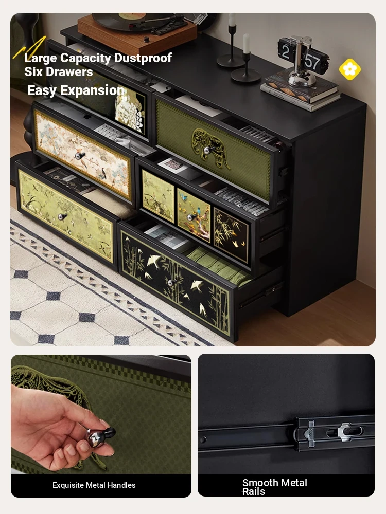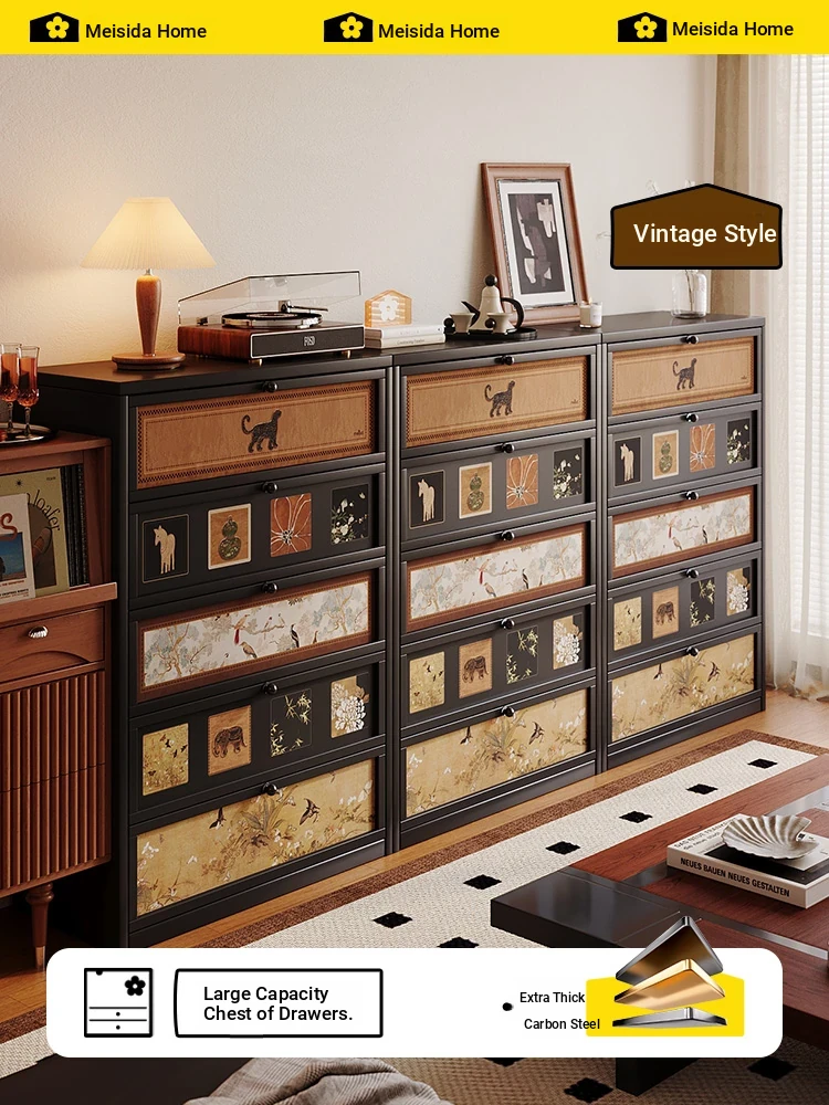 Meisida Metal Drawer Bookshelf - Vintage Black Floor Chest for Living Room & Bedroom, Elegant Iron Storage Cabinet for Stylish Organization