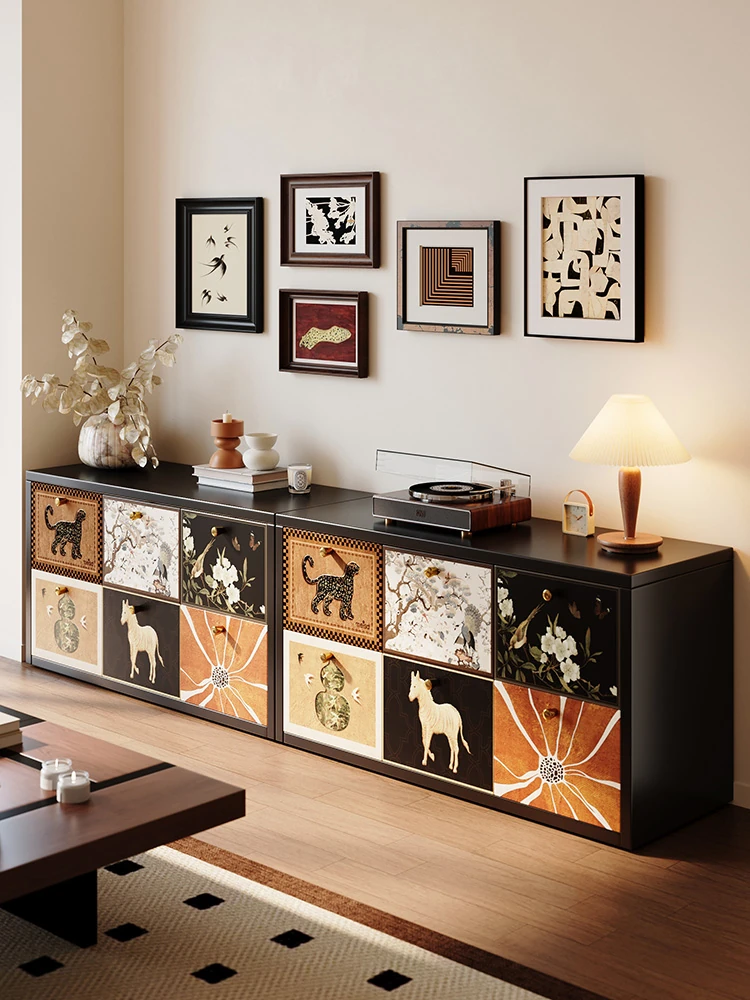 Mestada Vintage Style Wall-Mounted Storage Cabinet – Karlek Grid Design, Elegant Living Room Console with Drawers for Stylish Organization