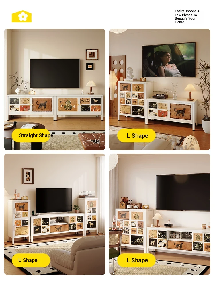 Meisida Vintage Cream TV Stand - 2025 New Model, Stylish Living Room Storage Cabinet, Versatile Floor Cabinet for Home Use