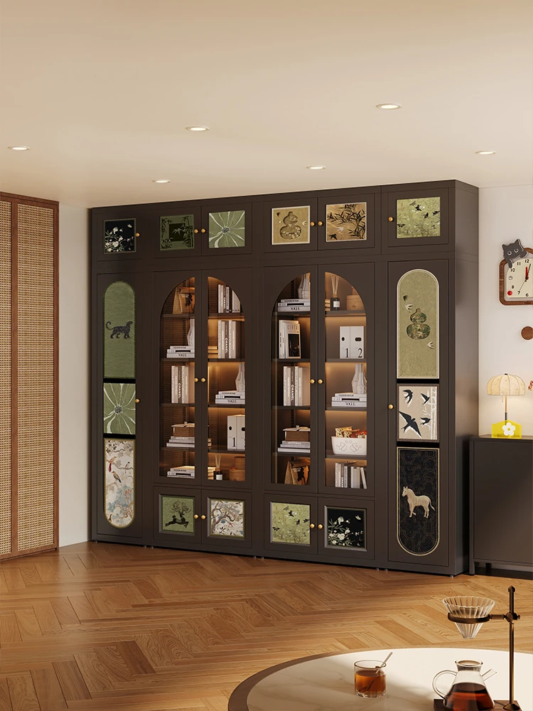 Elegant Vintage Style Glass Display Bookshelf - Iron and Steel Storage Rack for Living Room, Perfect for Organizing and Showcasing Your Favorite Books and Decor