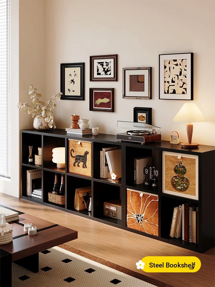 Mersita Vintage Style Floor Bookshelf - Versatile Steel Storage Unit with Grid Design, Perfect for Wall-Mounting and Organizing Your Space