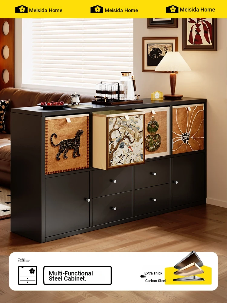 Meisida Vintage Style Black Iron Storage Cabinet - Versatile Cubby Organizer for Living Room, Entryway, and More - Stylish and Functional Storage Solution