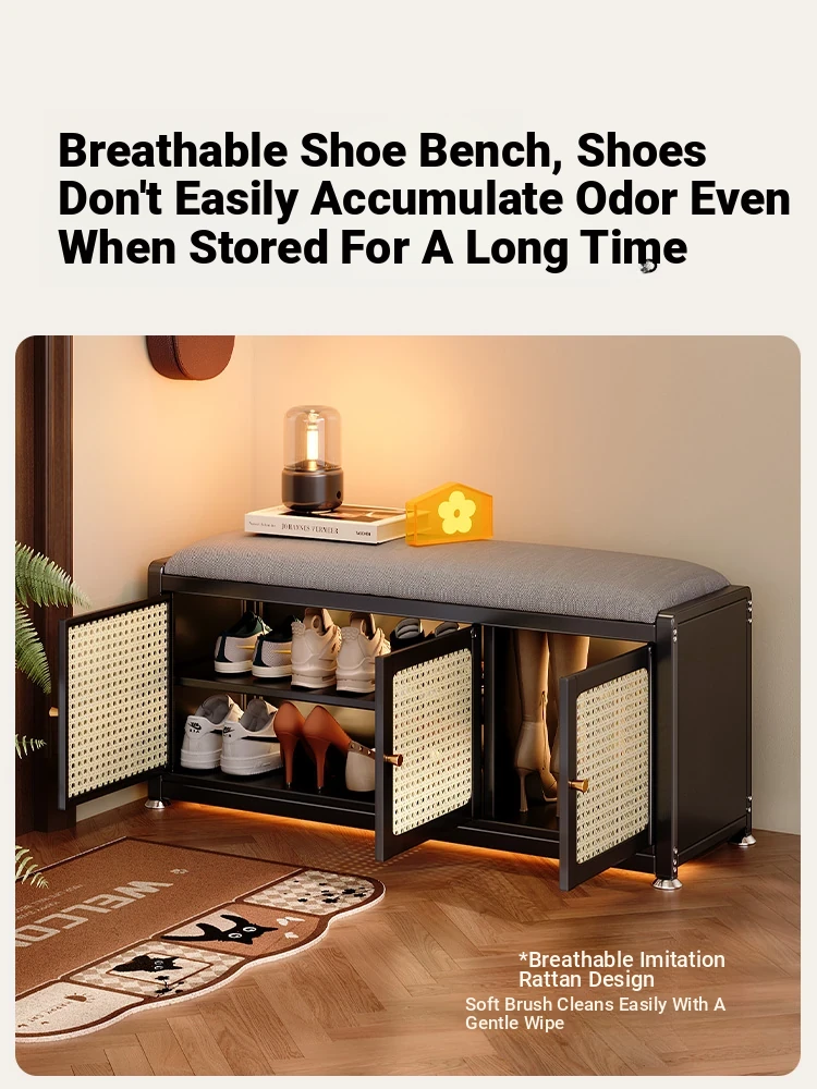 Meisida Rattan-Woven Shoe Changing Stool - Stylish Mid-Century Entryway Bench with Storage for a Chic Home Entrance, Perfect for Sitting and Organizing Shoes