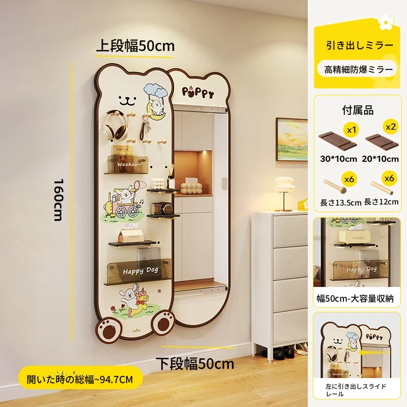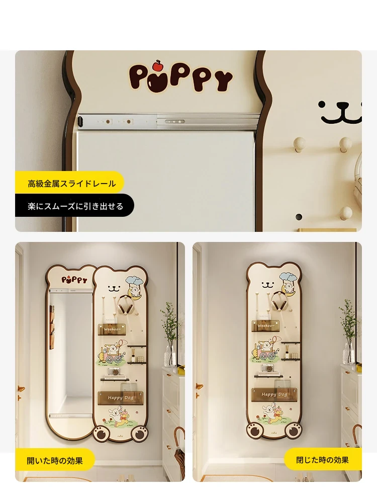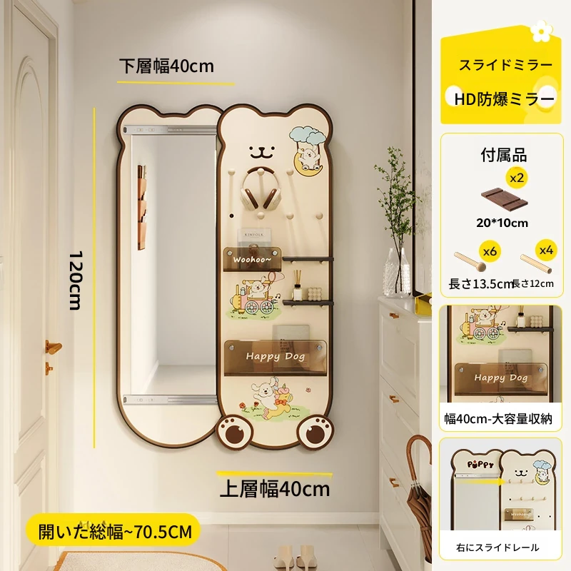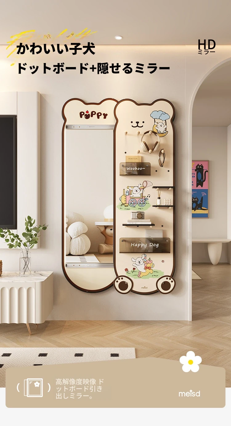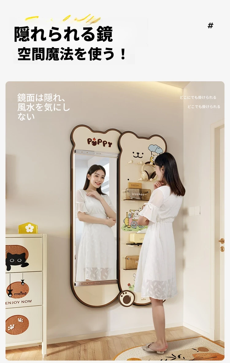 美世达の玄関用隠し式全身鏡【スライド式】、スタイリッシュな壁掛けドレッシングミラー。省スペースでおしゃれなインテリア、あなたの毎日のコーディネートをサポート!