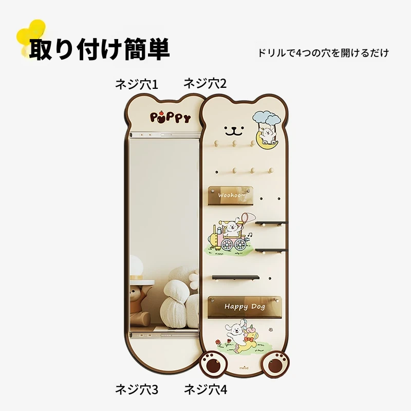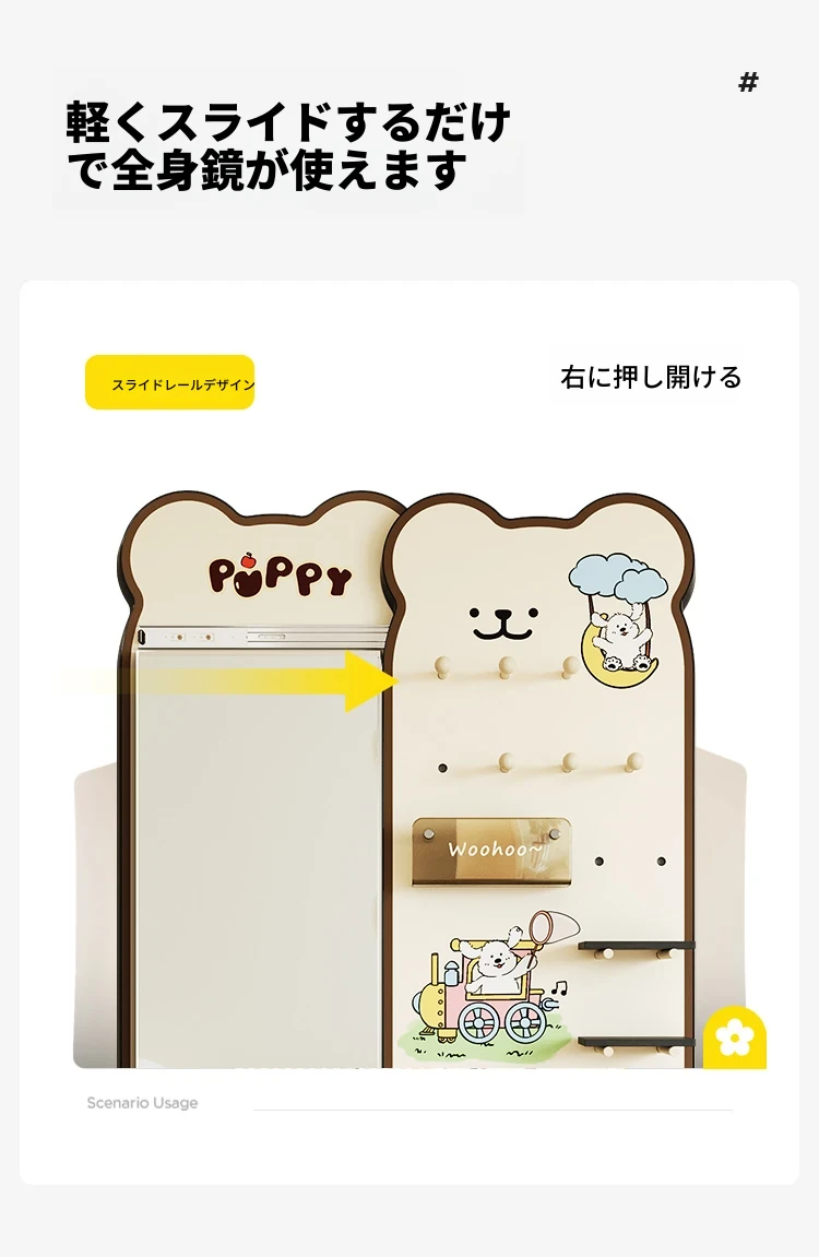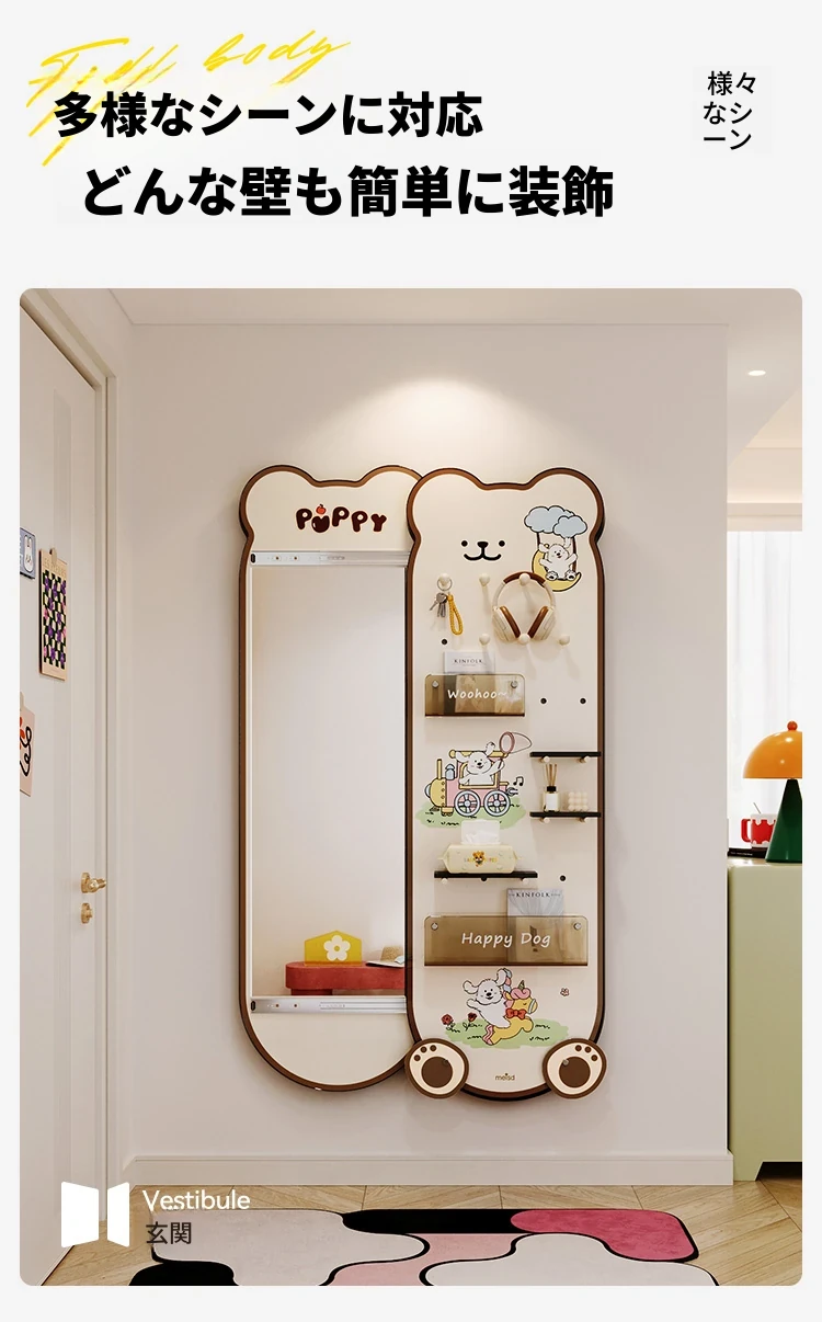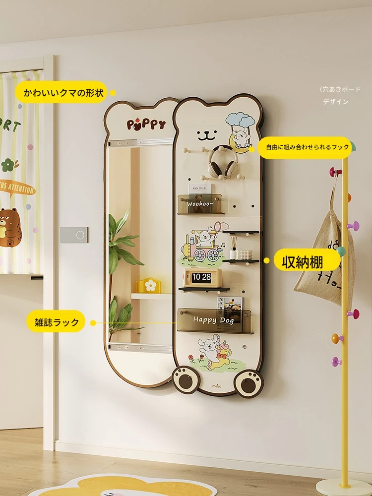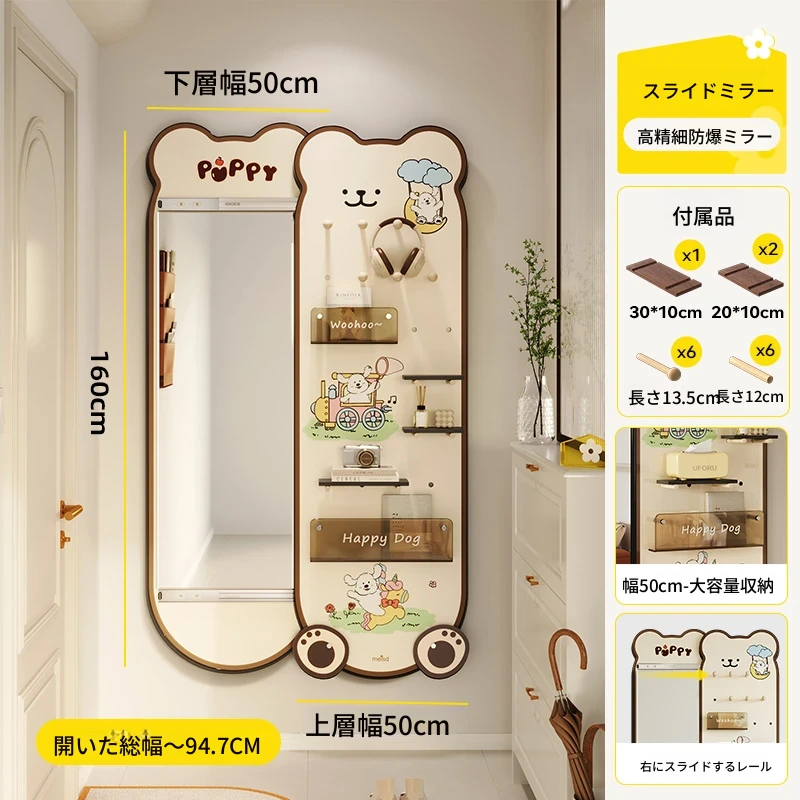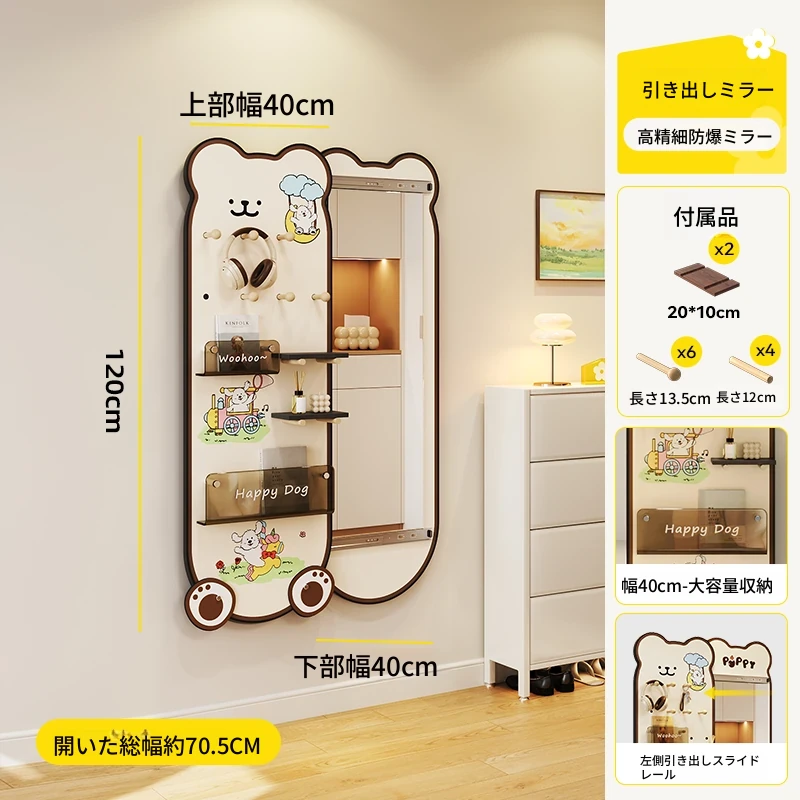 美世达の玄関用隠し式全身鏡【スライド式】、スタイリッシュな壁掛けドレッシングミラー。省スペースでおしゃれなインテリア、あなたの毎日のコーディネートをサポート!