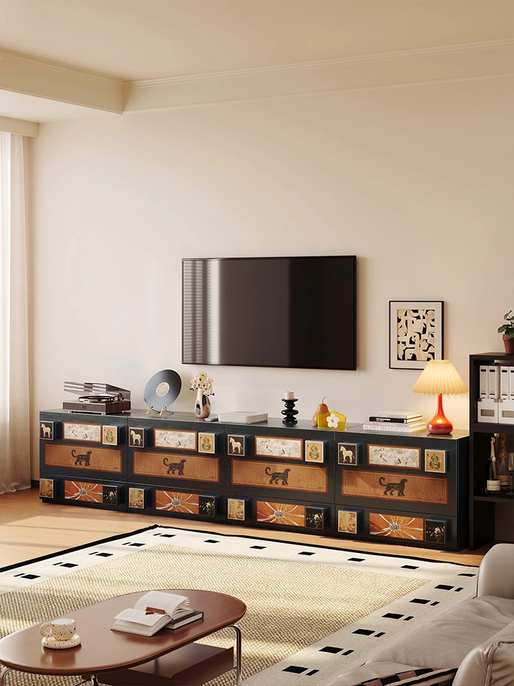 Meisida Vintage French Style TV Cabinet - 2025 New Floor Standing Solid Wood Living Room Storage Unit, Perfect for Home Decor