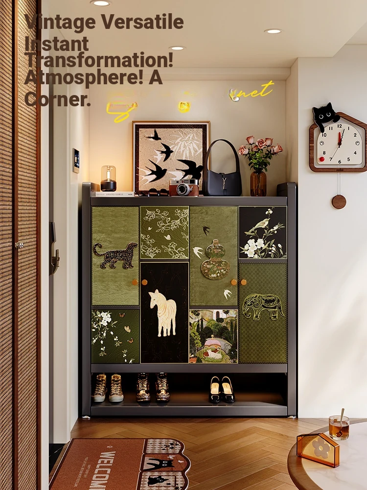Meisida Vintage Iron and Leather Entrance Cabinet - Stylish Dustproof Home Storage for Hallway, Living Room, and Entryway, Perfect for Organizing Shoes and Accessories
