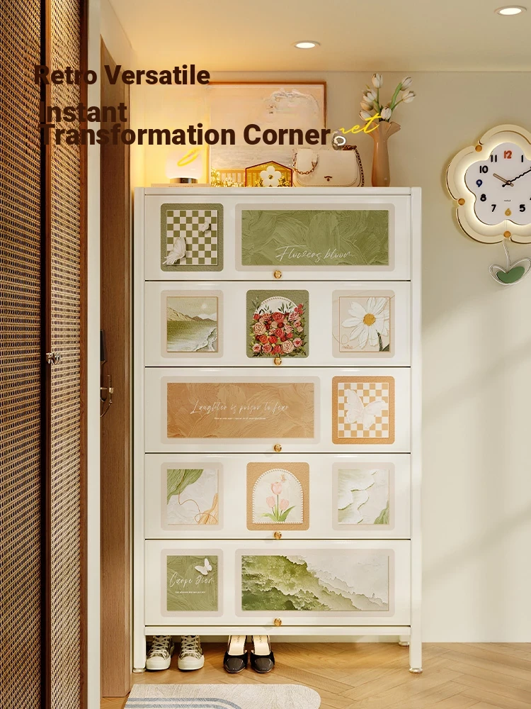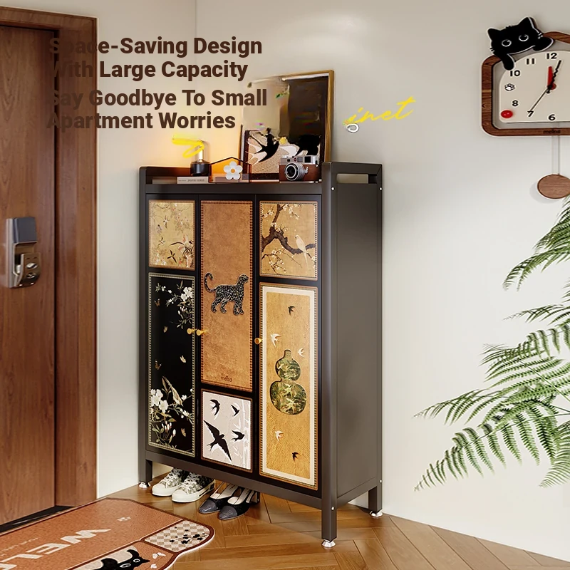 Stylish Steel Shoe Cabinet for Home Entryway - Multi-Layer Storage with Vintage Design, Space-Saving Wall-Mounted Solution for Large Capacity Organization