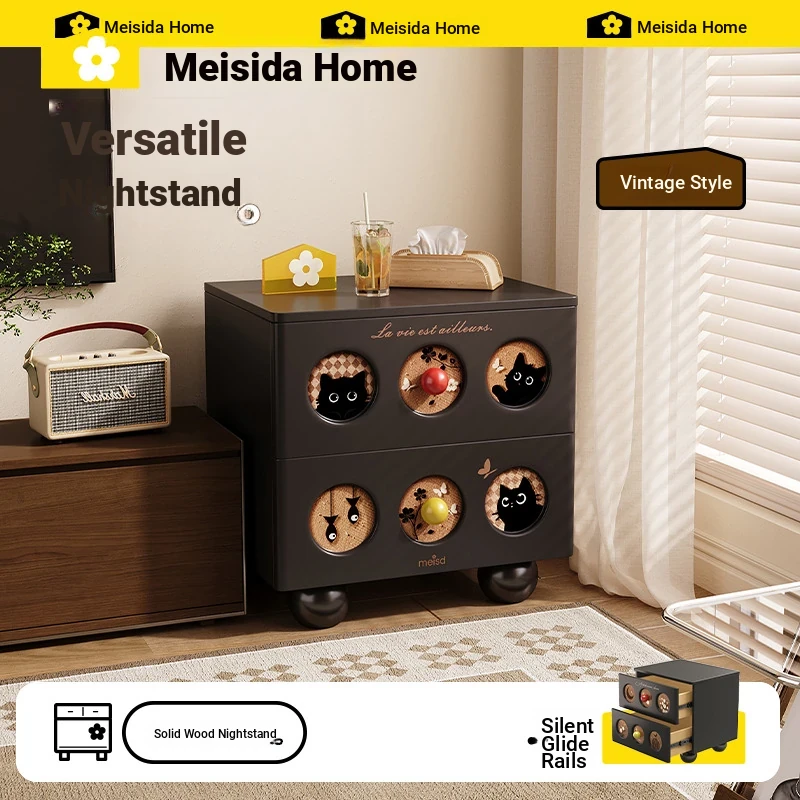Mestada Vintage Solid Wood Nightstand - Elegant Black Bedside Cabinet for Home Bedroom, Creative Storage Solution with a Touch of Luxury