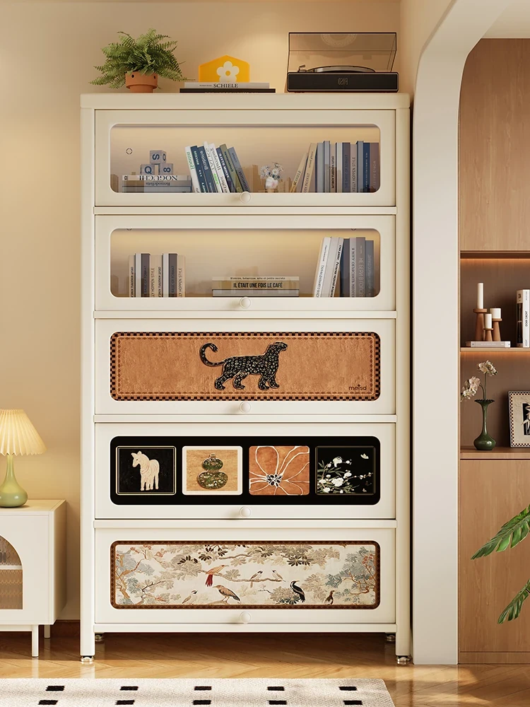 Meisida Glass-Door Bookshelf - Dust-Proof Iron Frame Vintage Style Creative Storage Cabinet for Living Room, Multi-Functional Shelving Unit