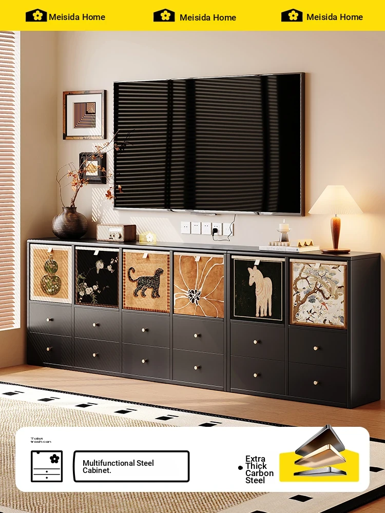 Vintage Iron and Leather Sideboard Cabinet - Wall-Mounted Storage Solution for Your Living Room, Crafted from Durable Carbon Steel, Perfect for Organizing and Displaying Essentials