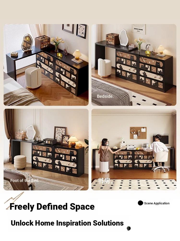 Meisida Vintage Style Bedroom Makeup Vanity Table with Integrated Storage, Multifunctional Steel Dresser and Bedside Chest of Drawers, Perfect for Organizing Your Beauty Essentials