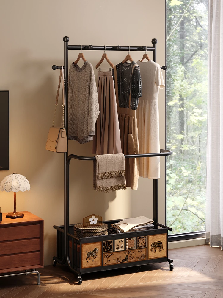 Meisida Vintage Floor Clothes Rack - Stylish Bedroom Garment Stand, Portable Hanging Clothes Organizer for Nightstand, Perfect for Easy Access to Your Outfits!