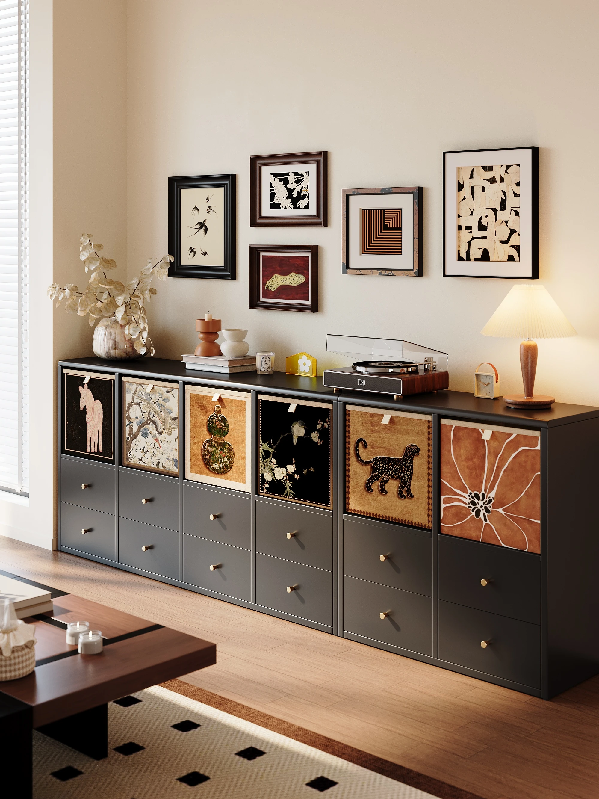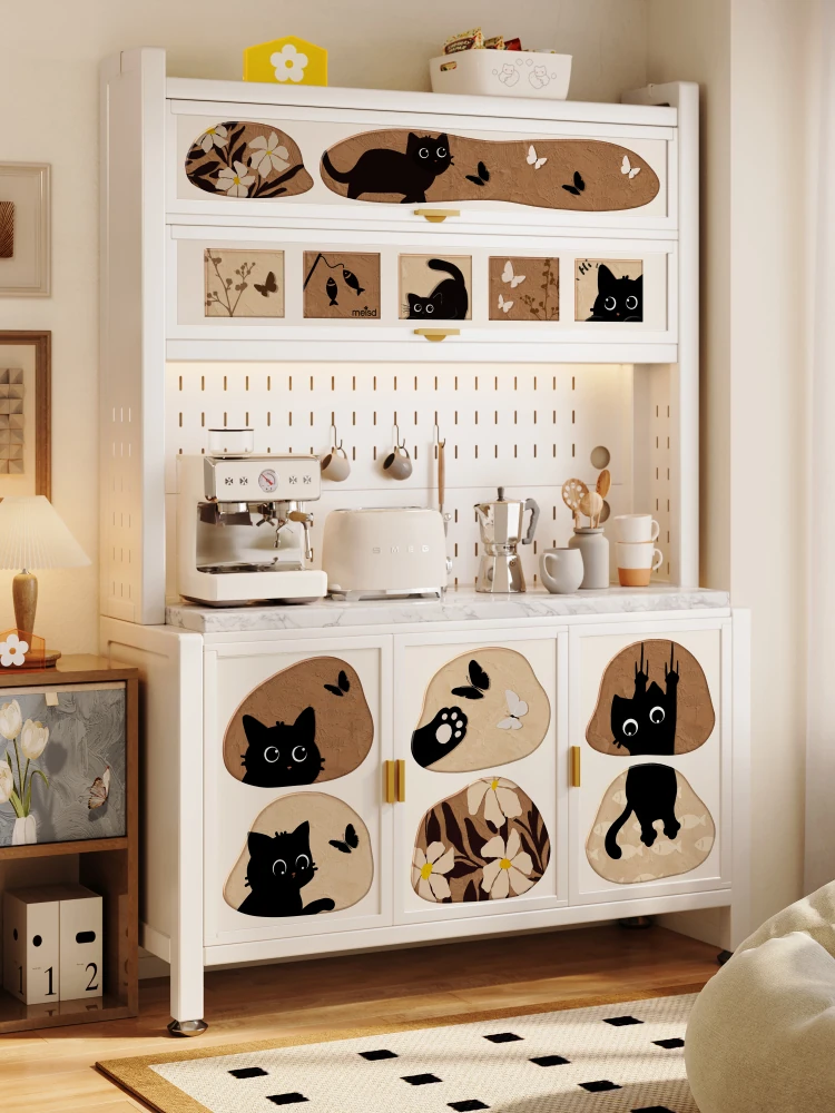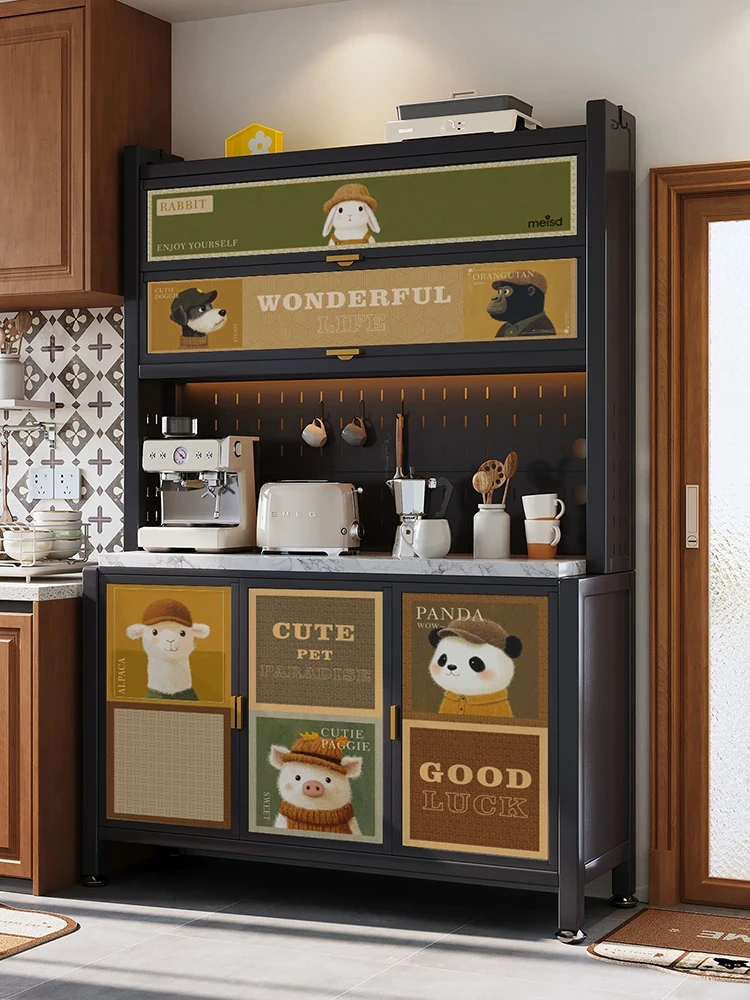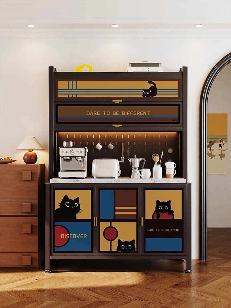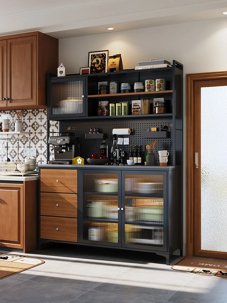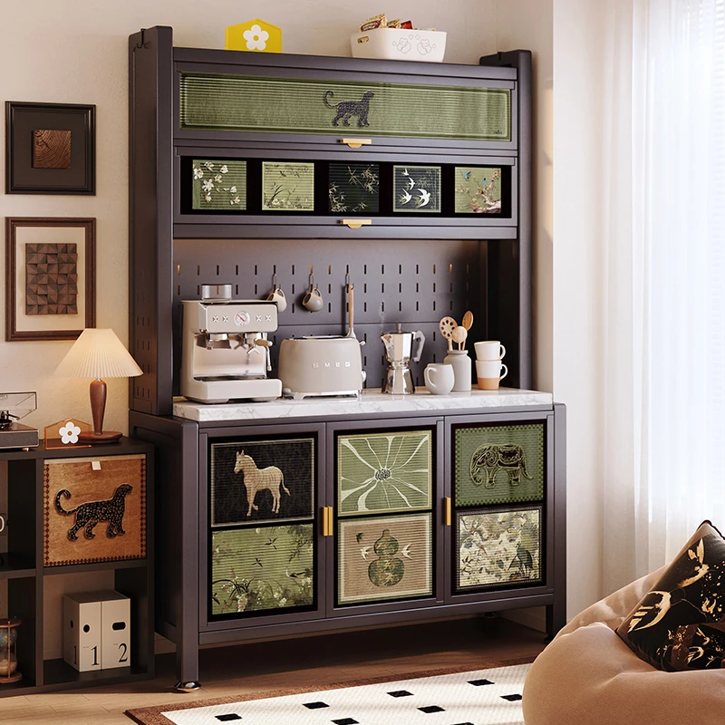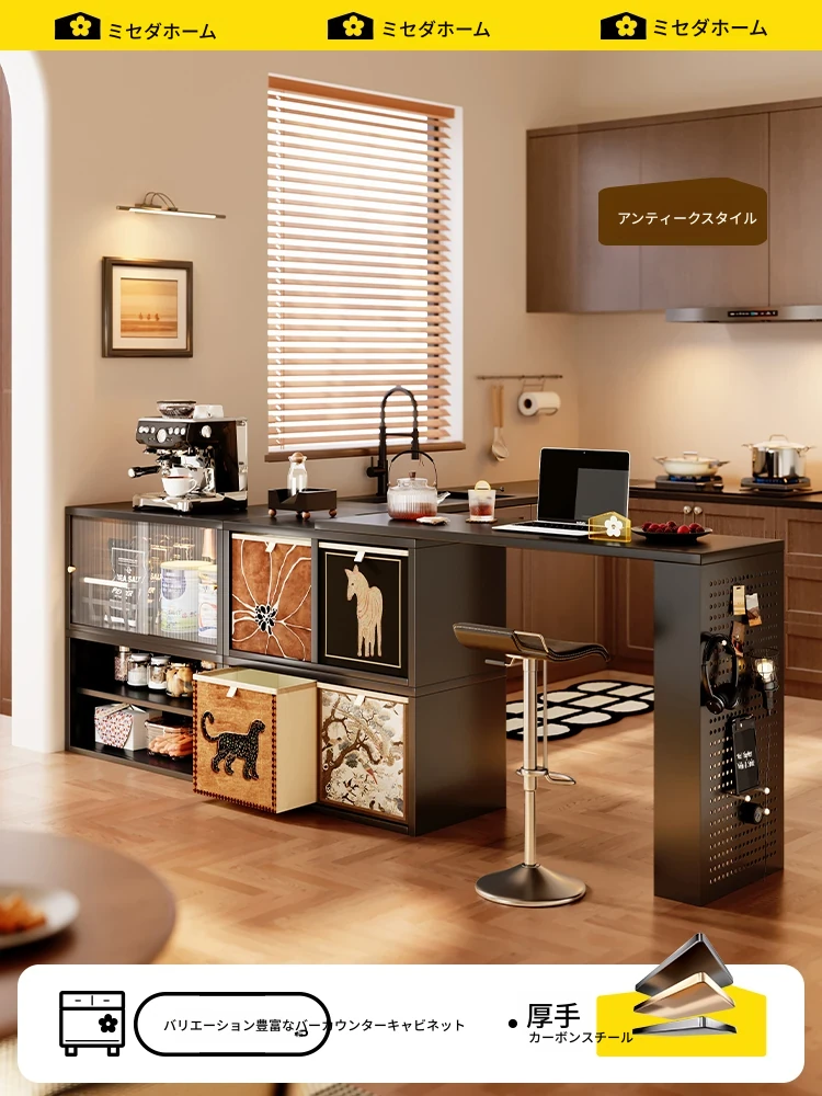 美世达のアンティーク風ドーパミン炭素鋼製サイドボード - 壁掛け収納とスタイリッシュな黒いアイアンデザインで、あなたの空間を美しく整理整頓!