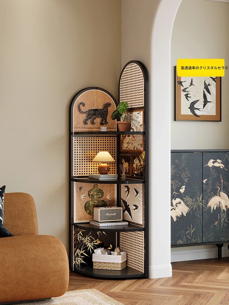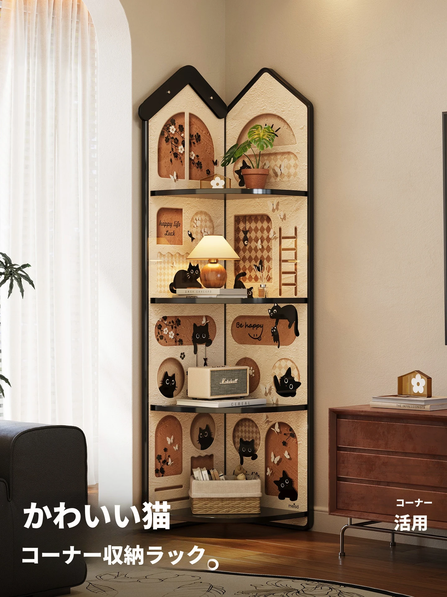 美世达レトロ風コーナー収納ラック 三角キャビネット リビングテレビ壁角用 多機能収納本棚で、あなたの空間をスタイリッシュに演出!