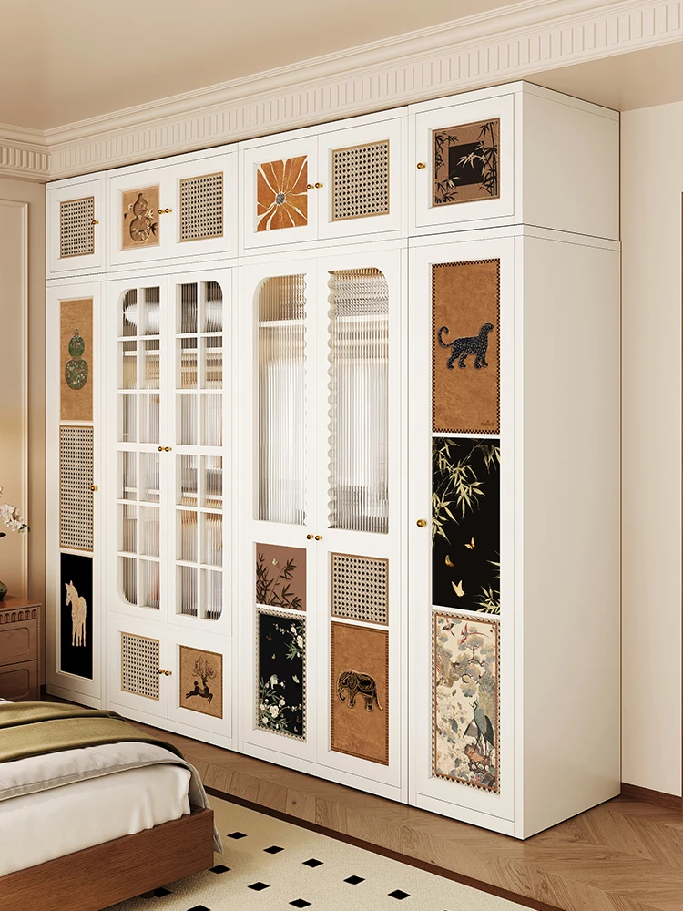 ミセダガラス衣装ダンス - アンティークスタイルの壁掛け一体型収納、芸術的なフレンチデザインの立て置きキャビネットで、あなたの寝室をスタイリッシュに演出します。