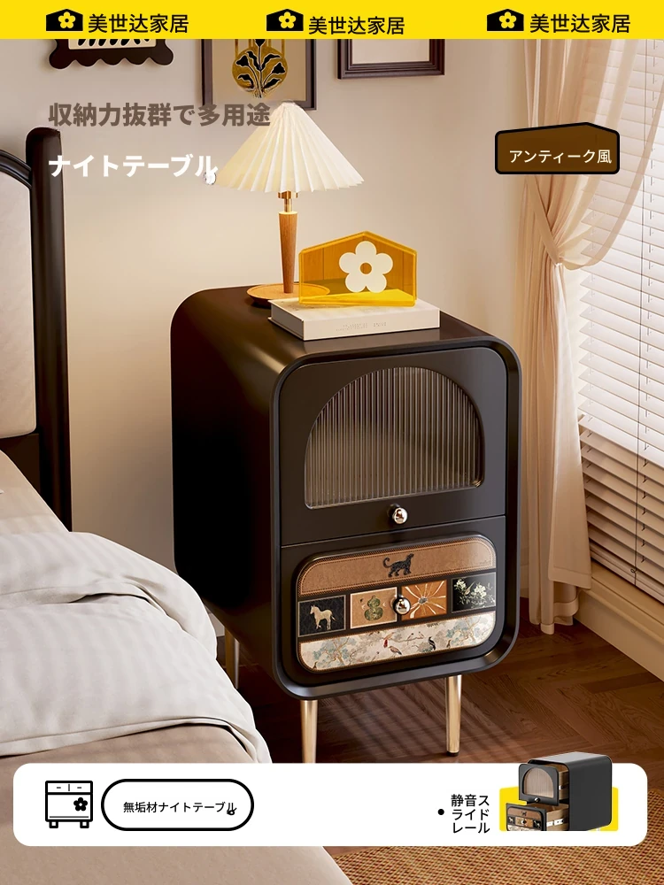 美世达のアンティーク風スリムナイトテーブル - 高級感溢れるミニマルデザイン、ブラック仕上げで30cmのスリムサイズ。コンパクトながらもスタイリッシュな空間を演出!