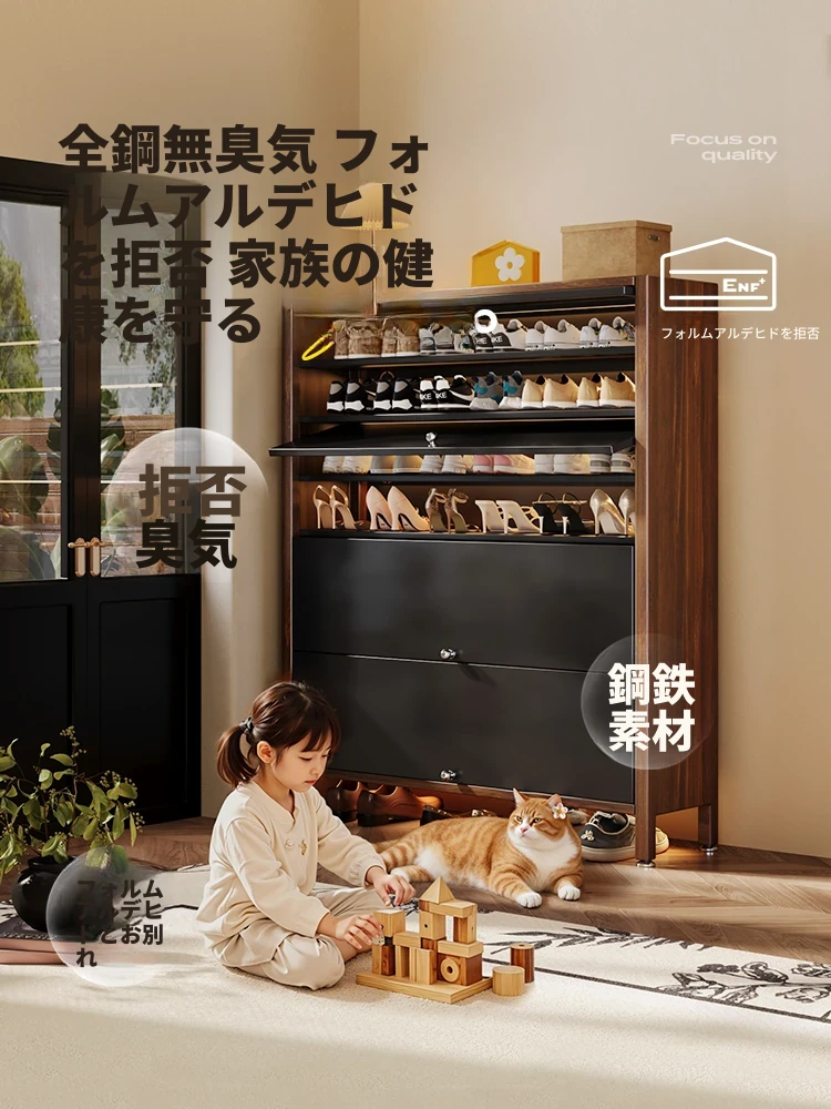 メイシーダ鋼製シューズキャビネット|家庭用・玄関の入門にぴったり!多層大容量&壁掛け式で、スッキリ収納。あなたの居住空間をスタイリッシュに演出します!