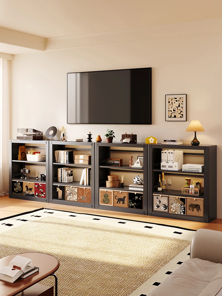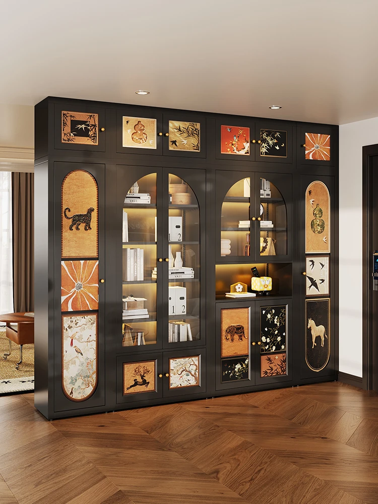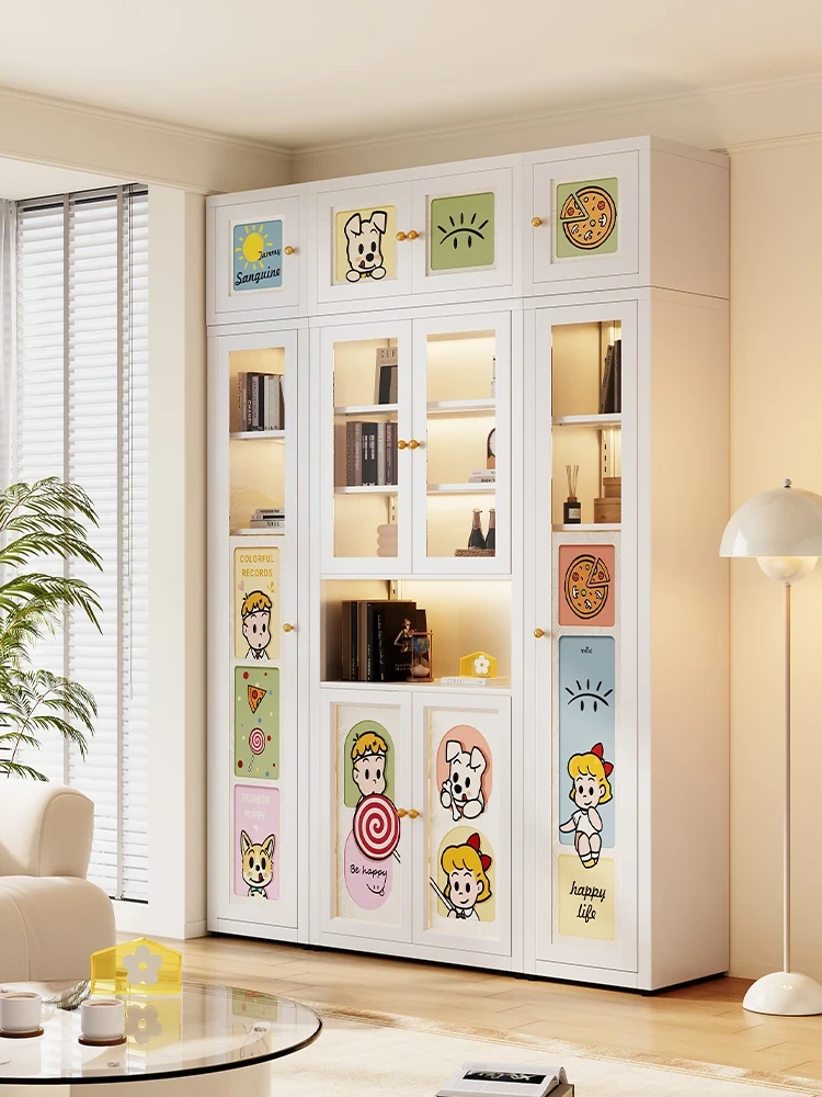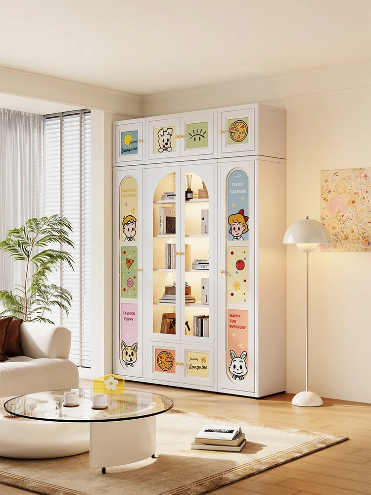 美世达のクリーム風アイアン製書棚 - ドーパミンを感じるリビング一体型収納コンビネーション、カーボンスチール製ガラス扉付き書庫。収納力抜群でインテリアにも最適!