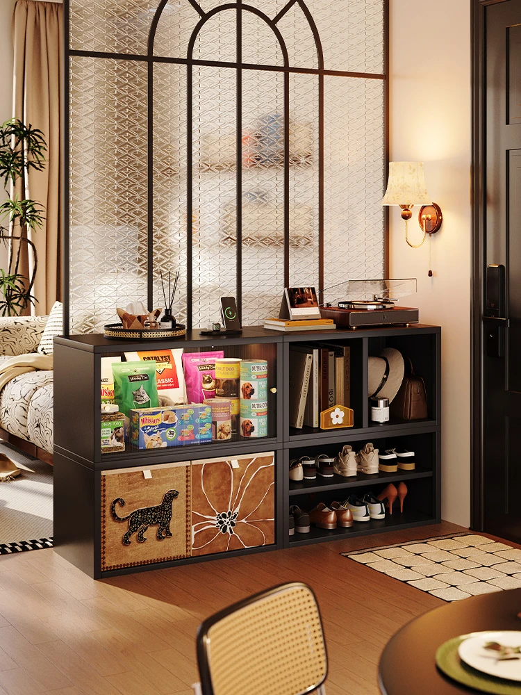 美世达のアンティークスタイルのコンビネーションキャビネット - 玄関にぴったりな仕切り棚!靴収納や小物整理に最適なカラフルな格子デザインで、スタイリッシュにおしゃれな空間を演出します。