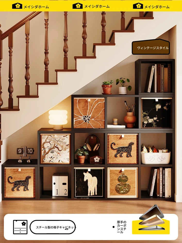 メイシーダ階段下コーナー収納ラック フロアブックシェルフ カレック自由組み合わせ格子キャビネット 書籍収納キャビネット - スペースを有効活用し、スタイリッシュにお部屋を整理整頓!