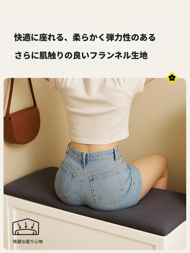 美世达シューズベンチ - スタイリッシュなクリーム風デザイン、玄関にぴったりの収納付き靴置き台!高級感あふれる軽やかなスタイルで、家族やゲストも快適に座れます。エントランスをさらに魅力的に!