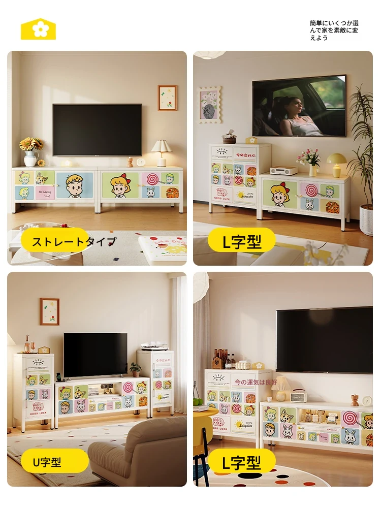 美世达クリーム風テレビキャビネット - リビングルームに最適なフロア収納キャビネット!小型住宅にぴったりな一体型収納ラック、スタイリッシュなデザインで空間をおしゃれに演出します!