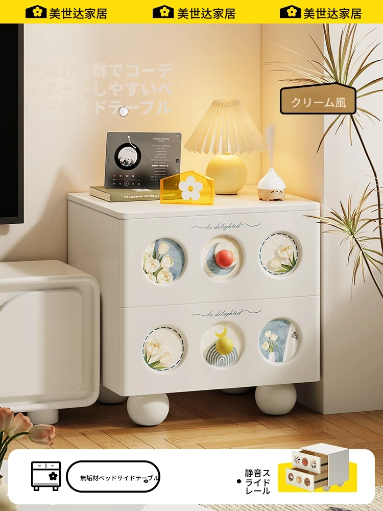メイシーダ フランス風クリーム仕上げの無垢材ナイトテーブル 家庭用 寝室 プリンセススタイル ベッドサイドキャビネット 子供用 ホワイトカラーサイドキャビネットで、優雅な空間を演出!