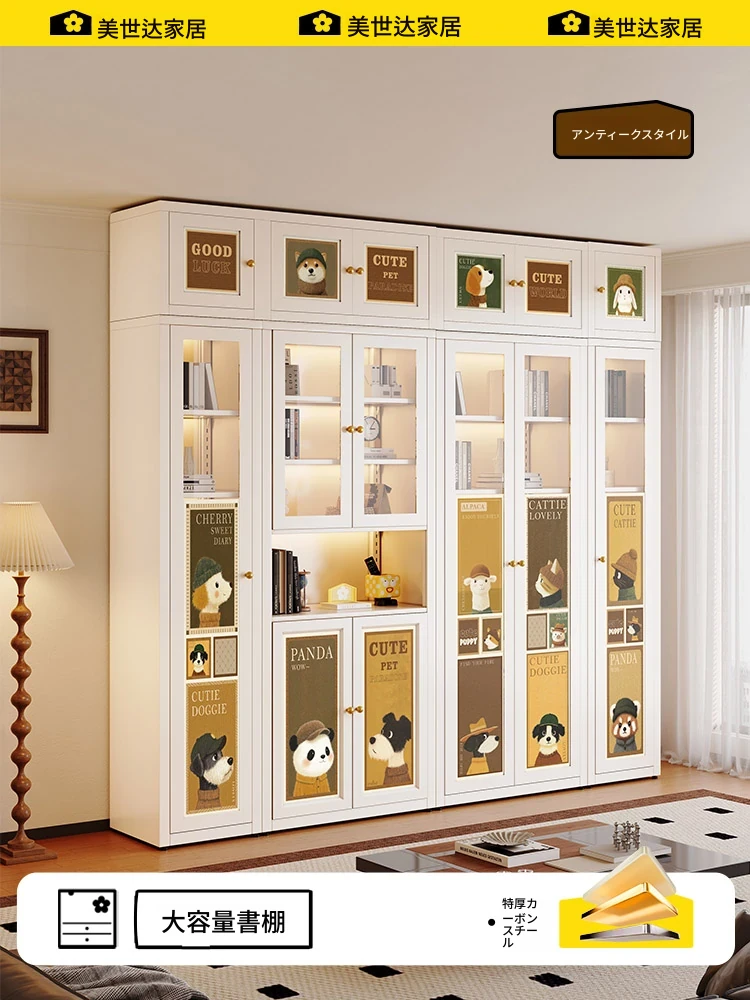 美世达のカートゥーンスタイルのアンティーク風カーボンスチール製リビングルーム用ディスプレイキャビネット、ガラスドア付きのフレンチブックシェルフ!おしゃれで機能的な収納スペースを実現し、あなたのインテリアを一新します。