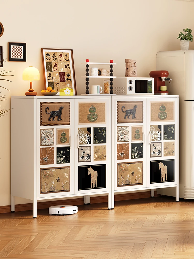 美世达のヴィンテージクリーム風アイアン製壁付け収納キャビネット - リビングルームにぴったりなスタイリッシュなスチール収納家具!おしゃれで実用的、あなたの空間を華やかに演出します。