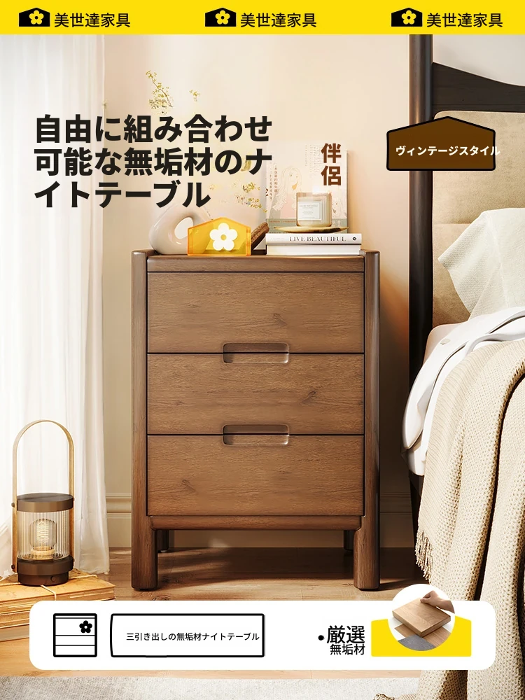 美世达レトロ全実木ナイトテーブル - 2025年新作、ウォルナットカラーのヴィンテージスタイル!3つの引き出し付き、家庭用寝室にぴったりの収納力。おしゃれで機能的なデザインで、あなたの空間を引き立てます!