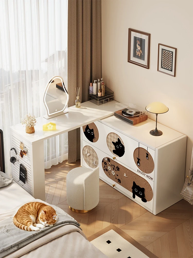 美世达のレトロ風炭素鋼製ドレッサー&チェスト一体型、コンパクトなベッドサイドアイアンメイクアップテーブル。おしゃれで機能的なデザインで、あなたの寝室に特別な魅力をプラスします!