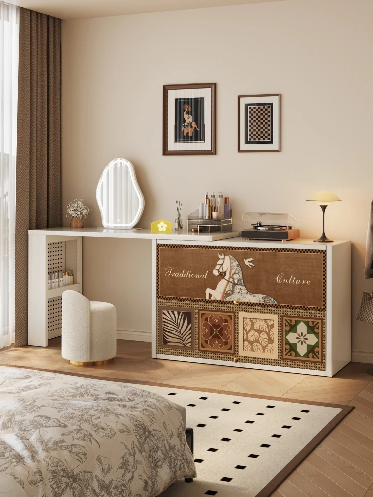 美世达のヴィンテージ風アイアン製小型伸縮ドレッサー&チェスト一体型ベッドルーム用スチールドレッサー - 2025年新作!スタイリッシュで機能的、あなたの部屋を魅力的に演出します!