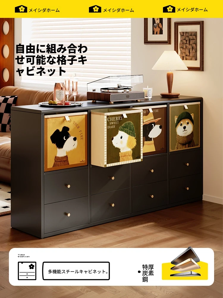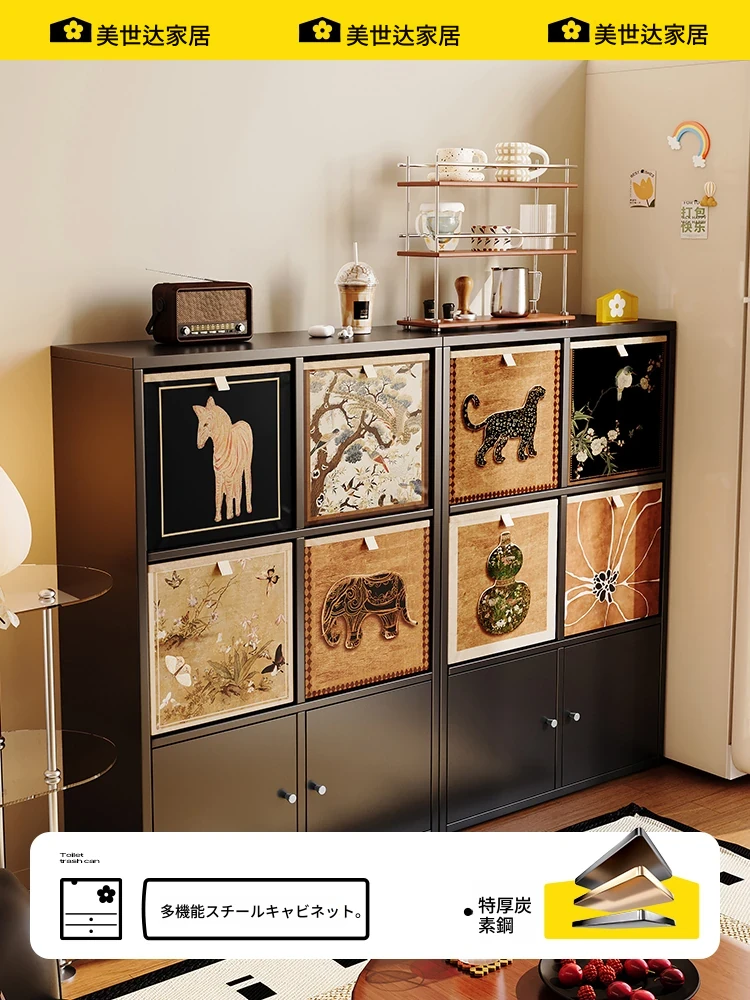 美世达のエントランス収納キャビネット - リビングの間仕切りとしても使える、スタイリッシュなカララックコンビネーション格子キャビネット。頑丈なスチール製で、地面にしっかりと固定できる便利な収納ラック。お部屋をおしゃれに演出し、収納力も抜群!