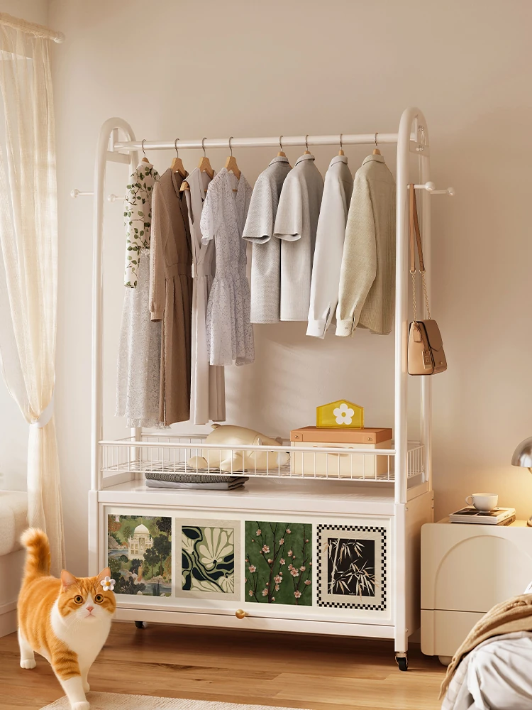 美世达のリビング用コートハンガー - 移動可能なクリームカラーの衣類ラック、オシャレで実用的!寝室やリビングに最適な収納アイテム!